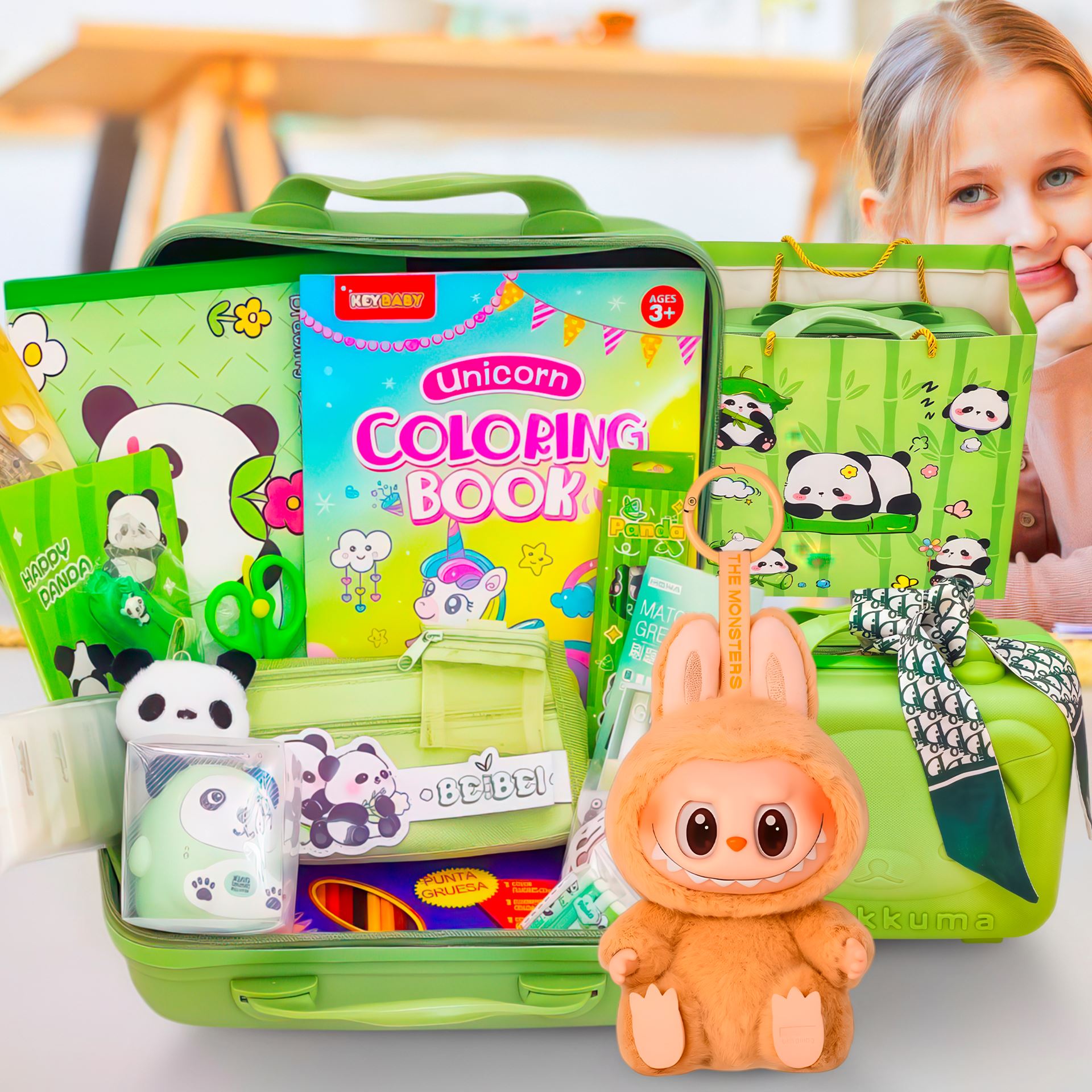 Стильний набір у зелено-білій гамі з кумедними пандами. Включає все необхідне для творчості та навчання в єдиному дизайні.